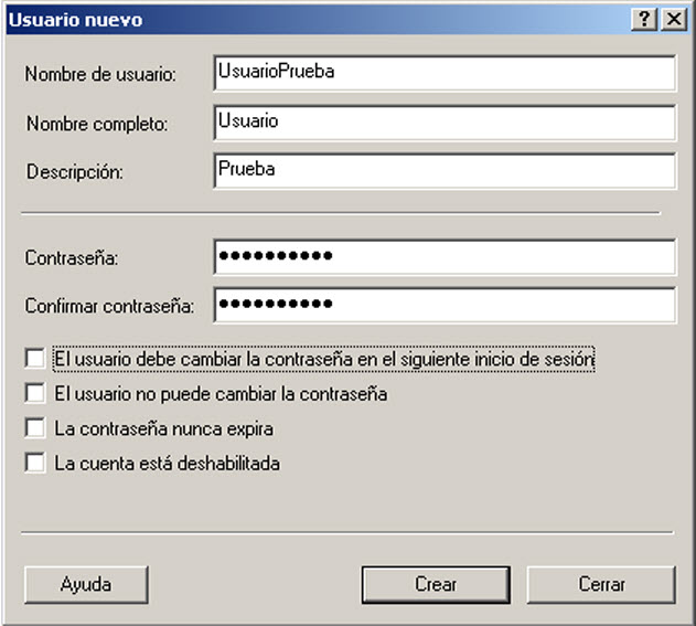 Una vez que se accede a crear el nuevo usuario, se muestra una ventana como vemos a continuación: